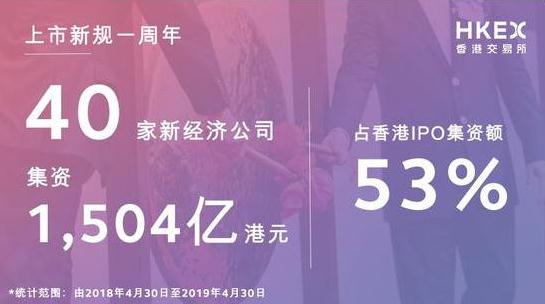 现在,改革已满一周年,成果丰硕,港股迎来了共40家新经济公司上市,包括9家生物科技公司和2家不同投票权架构公司,融资额累计约1504亿港元,占此期间香港集资金额逾五成。