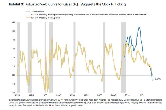 在5月28日周二的研报中,摩根士丹利分析师、被誉为“华尔街最悲观分析师”的Michael Wilson作出了三个相当大胆的预测:贸易阴云并非美国经济增长的唯一风险;在过去六个月里,经调整后的美债收益率曲线持续倒挂,表明衰退风险高于普通水平;美股波动性即将大幅上升。
