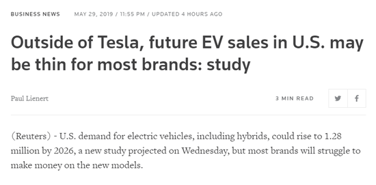 周三公布的一项新研究预计,到2026年,包括混合动力车在内的美国电动汽车需求可能升至128万辆,但多数品牌将难以在新车型上赚钱。
