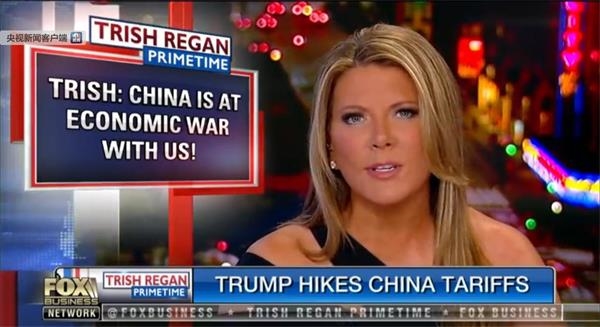 5月14日,美国福克斯商业频道《Trish Regan黄金时段》节目中,主持人Trish Regan宣扬对华“经济战”,将美国描述成中美贸易关系里绝对的“受害者”。