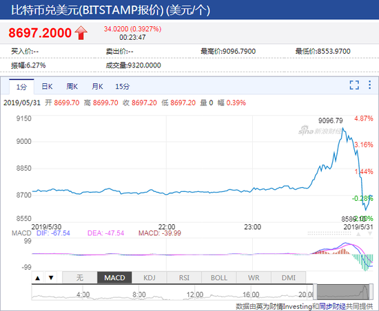 新浪美股讯 Bitstamp平台数据显示,比特币一度涨破9000美元整数关口,最高触及9096美元,创逾一年高位,随后回落逾500美元,跌破8600美元关口,最低触及8589美元。目前,该加密货币比2017年12月18日创下的19511美元的高点低54%。比特币在过去一周上涨了14%,今年迄今为止上涨了143%。