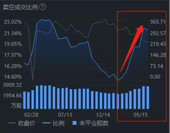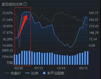 特斯拉正是最好的例子,2018年3月初,Model 3产能问题再次水面,彭博社放出消息,马斯克承诺的周产5000辆,根本就是笑话,根据他们的追踪,这个数字还不到1000辆,与此同时,在公司效力5年的财务副总裁辞职,市场哗然。特斯拉的做空比例由16%左右的水位开始上升,至3月底突破20%。