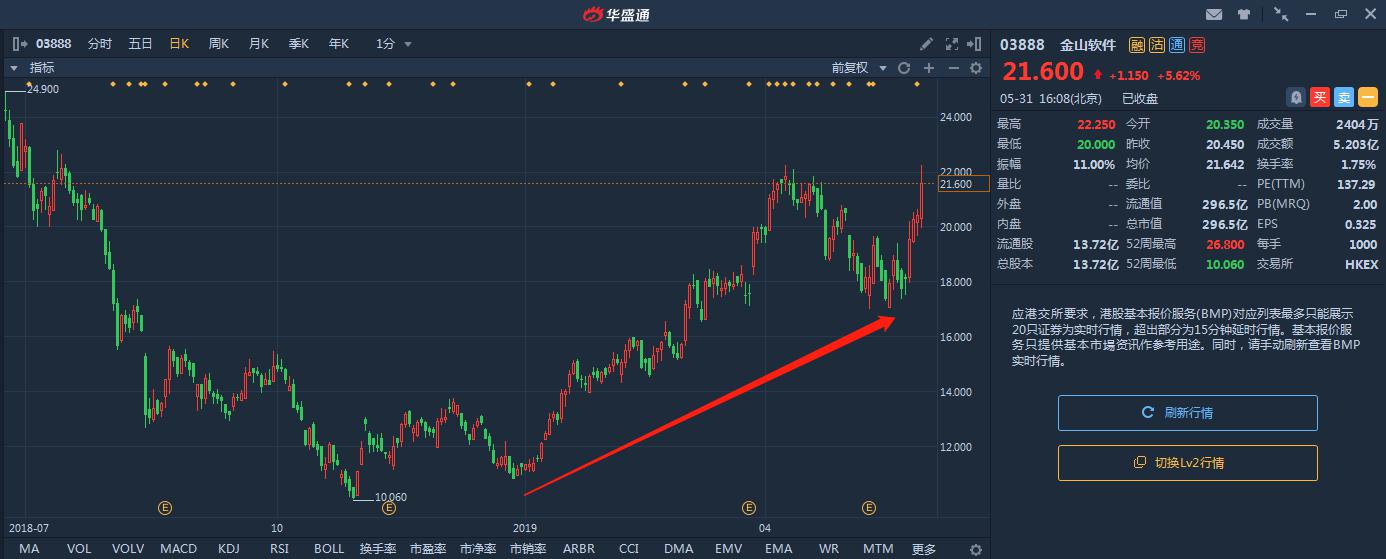 结语:三大利好叠加之下,金山软件股价的走强就不难理解了。在综合国金证券、中信建投以及中泰证券对于金山软件的估值,大概在380-400亿港币的区间,这也意味着保守估计金山还有28%到35%的上升空间。从金山软件的发展历程来看,应证了那句“打铁还需自身硬”。在求伯君、雷军等科技大佬们的坚持之下,才有了今天的WPS和金山云服务。在贸易摩擦愈加激烈的当下,这只中国人自己的软件公司等来了一个春天。