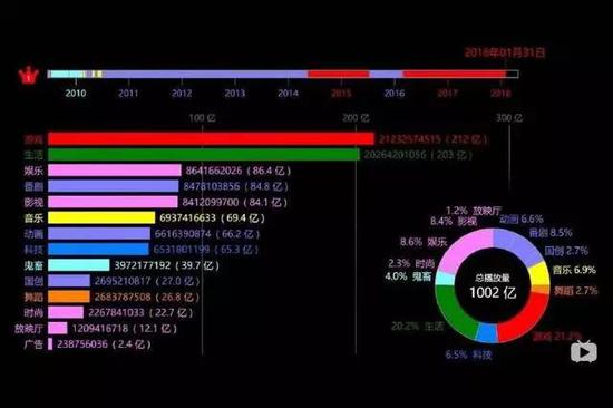 现如今,B站变成了很多青年人的生活vlog打卡基地和技能学习后花园,一大票人在B站看考研视频,学外语,发开箱。实际上,根据微博博主卢诗翰早前拉取的数据显示,B站目前第一内容是游戏类,第二内容是生活类,第三是娱乐类,第四才是动漫番剧。排名第八的科技类内容里面的课程类内容的播放量,就已经远超知乎得到等知识付费平台。时至今日,还把B站单纯的看作“二次元阵地”已经不太合适。