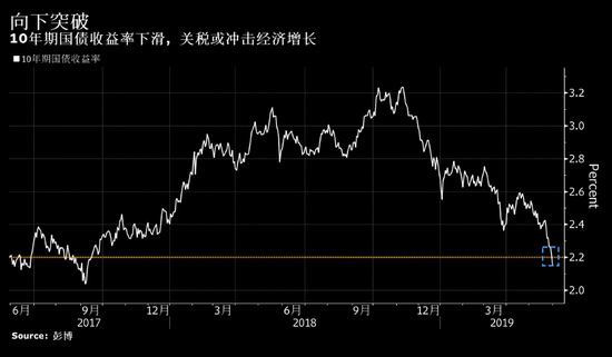 基准的10年期美国国债收益率周五触及2.145%,是2017年9月以来的最低点,因为特朗普之前表示,将对墨西哥商品加征关税,直到该国阻止移民非法进入美国。对贸易紧张局势升级的担忧促使投资者买入政府债券避险,正收益率的美国国债成了他们的最爱。