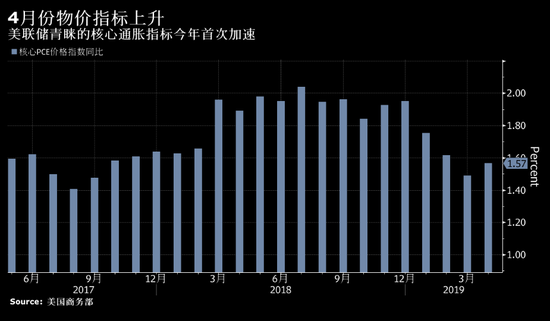 美国商务部周五公布的数据强化了美联储并不担心通胀的看法。今年截至4月底,美联储青睐的价格压力指标仅上涨1.5%,远低于美联储2%的目标。在剔除波动较大的食品和能源后,其涨幅为1.6%,是今年首次加速。