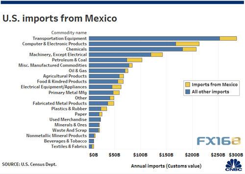 墨西哥是美国最大的贸易伙伴之一。美国每年从墨西哥进口价值数千亿美元的化学品、运输设备和其他商品。