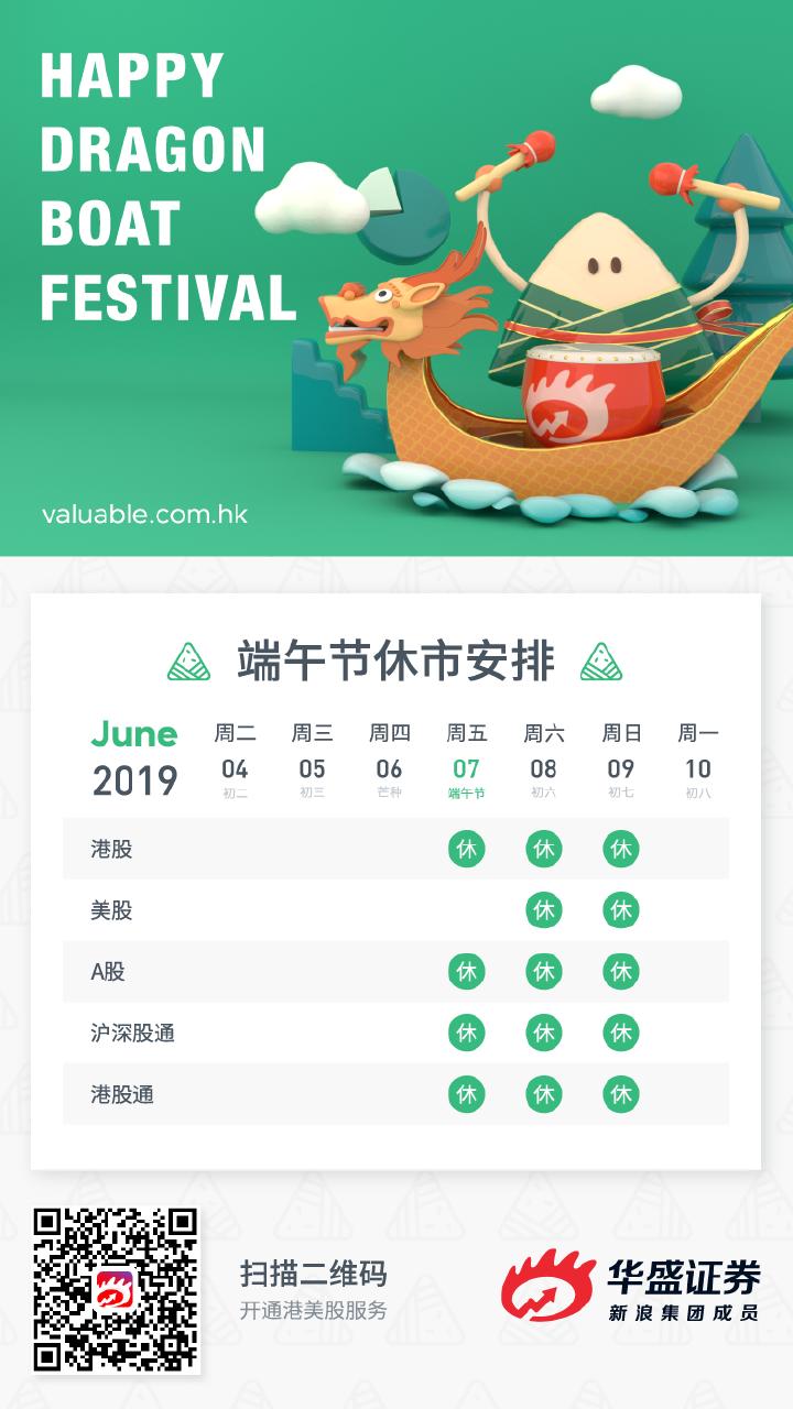 小编提醒:端午假期期间,A股市场、港股市场连休三天,而美股市场不受中国假日影响,正常开市,在欢快的假日里,别忘了留意股市的最新动向。提前祝各位端午节快乐,投资顺利!