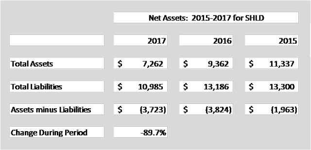 To answer that question, let's look at the decline and state of assets for a company, SHLD, that has actually filed to see what financial stresses are needed to prompt their filing. Here is that view, pulled from the same, earlier article: