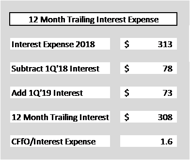 Interest expense for JCP for the trailing 4Q period was: