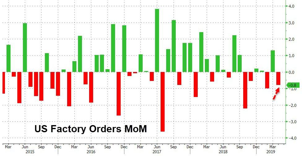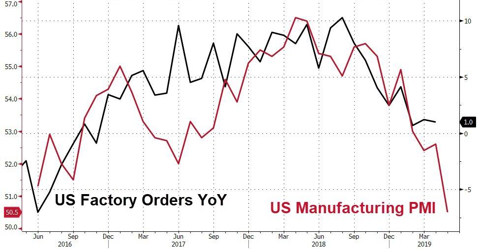 金融博客Zerohedge称,如果剔除月环比增长数据的噪音,只看年同比增长,美国4月工厂订单仅较去年同期增长1%,增速为特朗普上任以来最低。