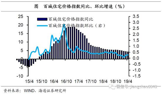 本轮经济下滑始于18年2季度,目前仍未见底,但政府保持定力,并未放松楼市调控,18年7月底政治局会议明确提出“坚决遏制房价上涨”,19年4月底政治局会议更是重提“房住不炒、因城施策”。从政策效果看,16年以来,一是全国地产销量增速持续下行,单月增速最低曾到过-5%,而今年以来累计增速也才-0.3%;二是百城房价涨幅趋缓,同比增速从17年初的18.9%一路下滑至今年4月的4.3%,环比增速则在0.5%附近低位平稳运行。