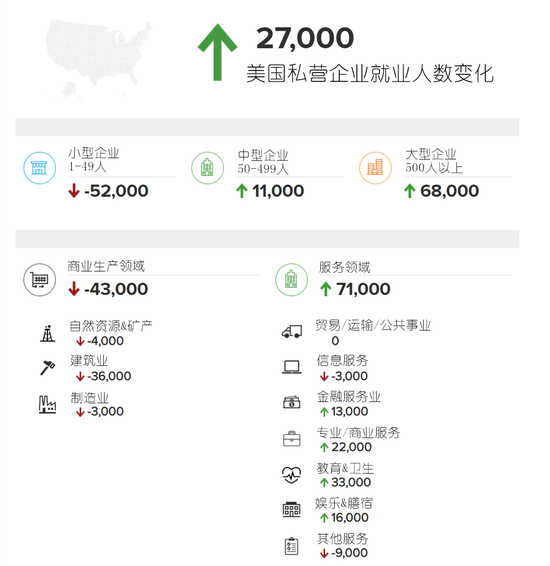 具体数据方面,5月建筑业就业人数减少3.6万人,4月增加4.9万人; 5月贸易/运输/公用事业就业人数维持不变,4月增加3.7万人;5月金融服务业就业人数增加1.3万人,4月增加0.6万人;5月专业/商业服务就业人数增加2.2万人,4月增加5.9万人。