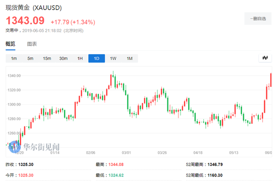 6月5日周三,黄金价格涨破1340美元,刷新2月21日来新高。