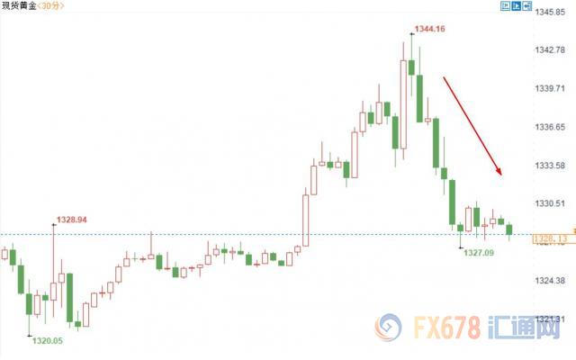 现货黄金较日高回落逾16美元,现货黄金交投于1328美元/盎司附近