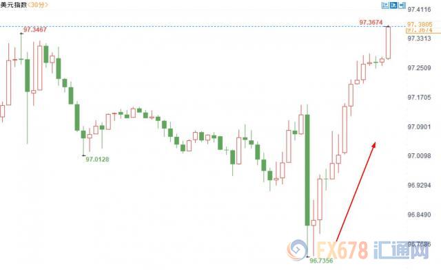 美元指数大幅反弹,一度较日低反弹超60点,刷新近二日高点至97.36