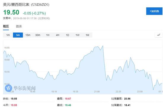 纳瓦罗表态后,墨西哥比索对美元延续涨势,连续第二日走高,北京时间6日零点过后,美元兑比索跌破19.50刷新日低。