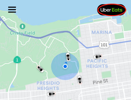 近日,Uber在其地图右上角增加了一个相当显眼的外卖服务的按钮,用户可以点击该按钮直接调用外卖服务,不必启动独立的Uber Eats应用程序,这样的软件改版能够增加这两种服务的使用率。