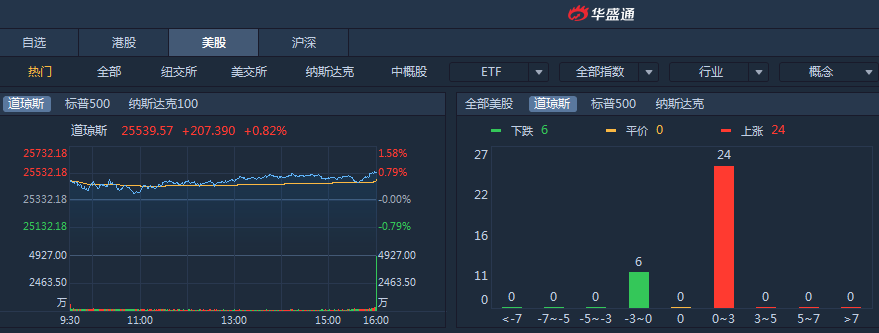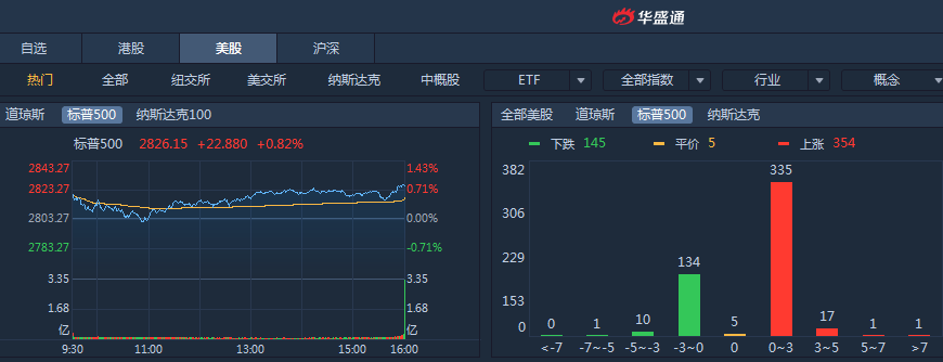周三降息预期升温,美联储报告显示经济总体上“缓步增长”,收盘标普收涨0.82%报2826.15点,道指收涨0.82%报25539.57点,纳指收涨0.64%报7575.48点。