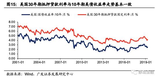 逻辑上,2016年2H美国住房自有率开始回升,表明美国人或已从金融危机的阴霾中走出来、不再排除地产。且目前住房自有率及居民部门杠杆仍处较低水平,一旦美联储阶段性宽货币,地产或受提振。2018年10月以来10年期美债收益率已出现两波大幅回落,而30年期抵押贷款利率走势与10年期美债收益率基本一致。考虑到地产投资和房价或滞后于利率变化,因此预计美国地产投资和房价或将于2019年底附近获得支撑。当然,若美国对非美贸易进一步施加压力导致全球出现系统性风险则美国地产市场的回升周期或将被推迟。
