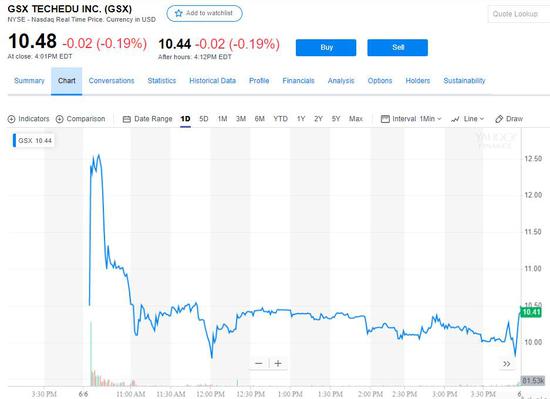 6月6日,美国纽约证券交易所(简称“纽交所”)再迎来一家中国在线教育企业——跟谁学。其股票上市首日开盘报12.10美元,较IPO发行价10.50美元涨超17%,早盘涨幅曾达到20%,但此后一路下行,午盘转跌,最低跌破9.7美元,跌超8%,尾盘反弹,最终收跌0.19%,收报10.49美元。