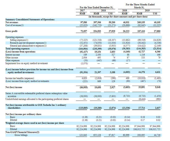 招股书显示,跟谁学近两年营收快速增长,其中,2017年收入为9758万元,2018年同比暴增306.85%达3.97亿元,2019年一季度则为4691万元。虽然2017年,跟谁学净亏损达8695.5万元;但在2018年就实现扭亏为盈,净利润达1965万元,2019年一季度净利润进一步扩大,达3389万元。