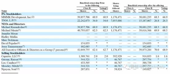 IPO后,联合首席执行官Michael Karanikolas和Michael Mente继续凭借其B类股持有公司近70%的投票权。