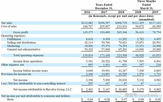 招股书显示,Revolve在2016年、2017年、2018年营收分别为3.12亿美元、4亿美元、4.98亿美元;