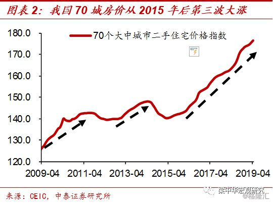 例如2017年我国70城房价涨幅为5.2%,房价上涨带来的存量房产增值就有9万亿,而当年居民可支配收入仅增加了4.6万亿,只有房产增值的一半。同样的道理,2018年我国居民房产增值规模更是高达14万亿,是居民可支配收入增幅的3倍还要多。除了房产以外,由于居民配置的债券、股权等其他资产很大程度上也和房地产有关,房价上涨时也会享受增值收益。