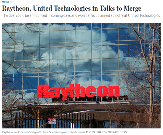 联合技术是全球多元化制造企业之一,主要为全球航空航天和建筑业提供高科技产品和服务。该公司是道琼斯指数30个成分股之一,截至本周五,该公司市值报1139亿美元。雷神是美国的大型国防合约商,截至本周五,该公司市值报520亿美元。这两家公司的总市值为1660亿美元,经分拆调整后,两家公司的总市值可能仍将超过1000亿美元。