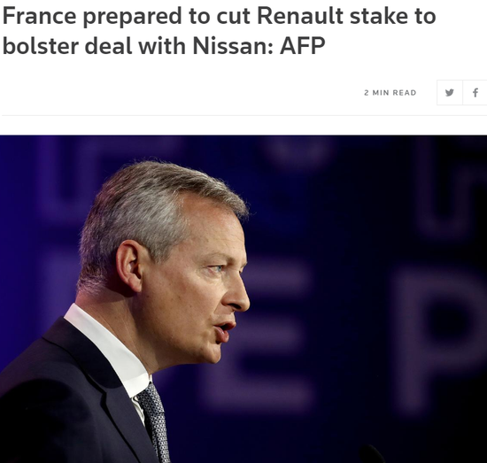 法国财政部长布鲁诺-勒梅尔(Bruno Le Maire)表示,法国准备考虑减持雷诺的股份,以帮助巩固雷诺与日产汽车的联盟。