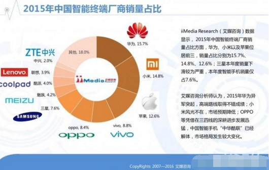 2014年年底,成立仅四年半的小米,不仅在完成一轮11亿美金的融资之后,公司估值高达450亿美金,还在当年横扫国内手机厂商,以6112万台手机的出货量第一次摘下国内手机厂商桂冠。但是好景不长,2015年小米手机出货量约为7000万,被华为赶超,不过此时小米还能占据第二的位置,而2015年也是小米历史手机出货量的最高峰巅值。