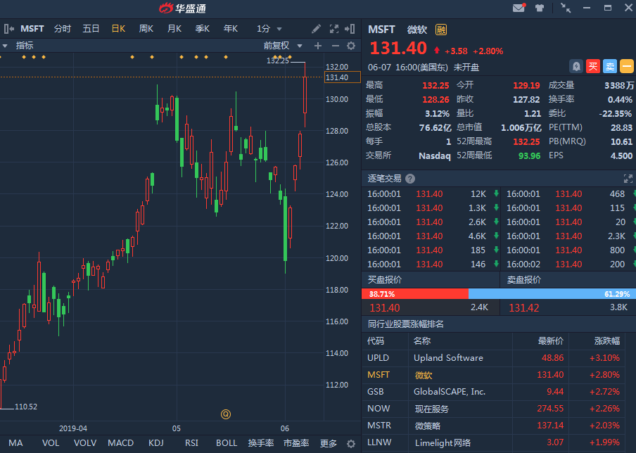 上周五微软(MSFT)股价报收于131.40美元,再创历史新高,市值突破1万。从市值角度,微软成为继苹果之后第二家市值破万亿的企业,而且当前市值超过亚马逊和苹果,为目前美国市值最高的公司,领先后两位已经逾1000亿美元。年内股价表现上,微软股价涨幅也跑赢后两位巨头,年内股价涨29.5%,分别超过亚马逊及苹果的19.8%及20.4%。