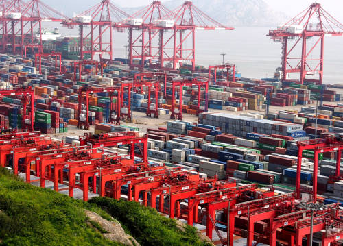 上海洋山保税港区内的集装箱货柜摆放密集。资料图片