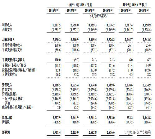 招股书显示,2016年至2018年,贵州银行净利润由19.61亿人民币(单位下同)增至28.77亿,年复合增长率为21.1%。截至2019年3月31日,贵州银行净利润为人民币9.57亿元,相较于2018年同期增长近30%。