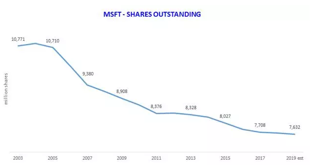 这些钱都花在了股票上,自微软金融服务公司开始分红以来,流通股的数量发生了什么变化?