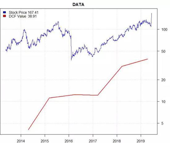尽管如此,这一消息并不能证明 CRM 和 DATA 的价格是合理的。 我建议你参考我对这3只股票的贴现分析。 这些趋势显然是不同的——就像本文的第一张图表一样,其中一个趋势与其它趋势不同: