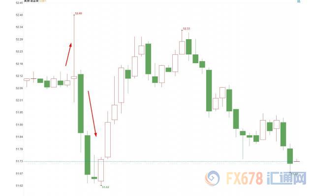 数据公布后,美油小幅拉升后快速跳水,失守52美元关口,一度较EIA数据披露后的高位回落近0.7美元,跌近3%。