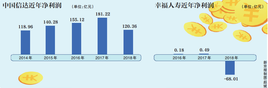 从幸福人寿的表现来看,近年来,其经营状况并不乐观。幸福人寿的业绩不佳也拖累了中国信达,2018年中国信达实现归属于公司股东的净利润120.4亿元,同比下滑33.6%。“2018年(中国信达)净利润出现下滑主要受保费收入减少影响,而集团保险业务主要由子公司幸福人寿经营。”中国信达表示。