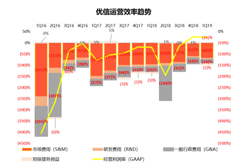 总体来看,2019年第一季度,在规模效应和有效成本控制的作用下,优信本季度各项运营费用营收占比继续小幅降低,运营亏损进一步收窄。