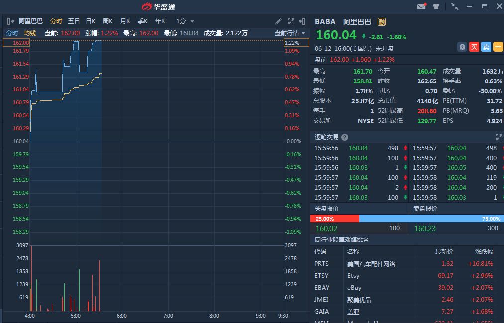 阿里巴巴集团盘前涨幅扩大至1.22%,此前有报道称阿里已经递交香港上市申请。
