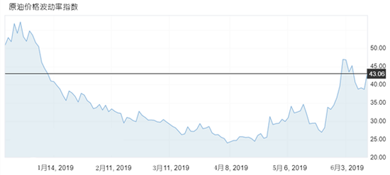 另一方面,随着影响油价的不确定因素增加,油价的波动性也显著上升。如下图所示,近日原油价格波动指标OVX不断飙升。