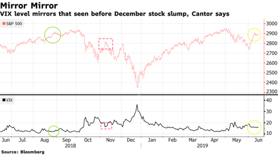 Cecchini周四在一份报告中写道,当标准普尔500指数在当前水平附近,并且在去年8月创下新高时,波动率指标大约为12.5。但当VIX指数在11月的当前水平附近时,股市在去年12月的风险资产暴跌前夕,创下短期高点。
