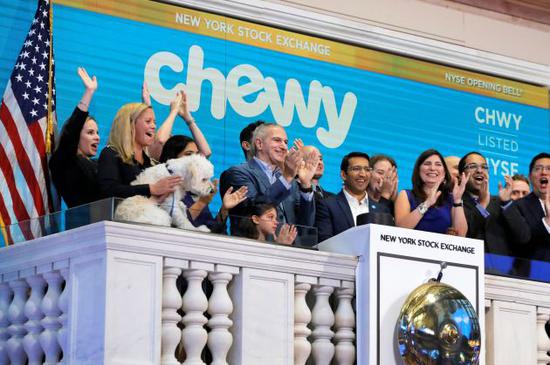 美国最大宠物电商Chewy.com于周五在纽交所挂牌,股票代码为“CHWY”,开盘价为36美元,较之22美元的IPO发行价大涨63.6%,随后涨幅扩大至81%。