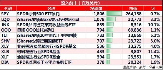 主要ETF变动情况: