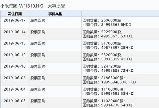 新浪财经讯 6月17日消息,小米集团:6月18日回购260.4万股B类股份,耗资2498.13万港元,回购价格区间为9.56港元至9.59港元。6月份以来已累计9天回购,共计回购7016.66万股,涉资6.51亿港元。截至18日收盘,小米报价9.59港元,市值2304亿港元。
