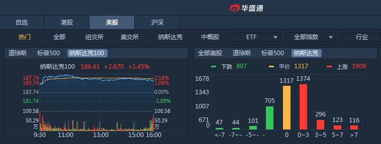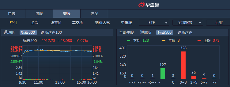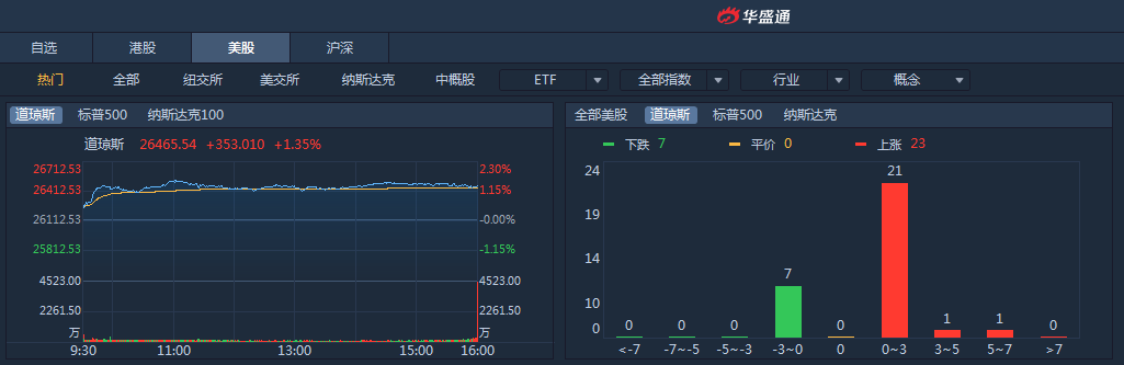 周二,美联储宽松在望,美股三大股指集体上涨。道指涨1.35%,报26465.54点;标普500指数0.97%,报2917.75点;纳指涨1.39%,报7953.88点。