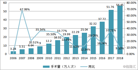 图7:爱尔眼科2006-2018年手术量数据的变化情况
