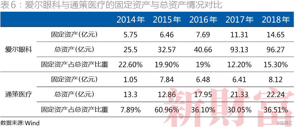 这一模式使得爱尔眼科保持了“轻资产”的运作特征,体外培育的医院项目不会计入上市公司的财务报表内。如此一来,爱尔眼科的固定资产占总资产的比率连年保持在20%以下,明显低于国内同行,如通策医疗的固定资产占比近40%(表6)。“上市公司+PE”模式下,轻量的资产规模,给了其更大更快的资本运作空间,让其更加得到资本青睐。