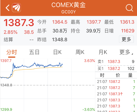 亚特兰大联储预计,今年第二季度美国年化GDP将增长2.0%。美国初请失业金数据公布后,金价小幅波动,COMEX黄金日内涨2.85%,现报1387.3美元/盎司。美元指数DXY波动不大。